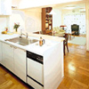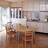 家族みんながワイワイ囲める、明るく楽しいキッチン。